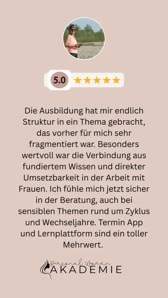 Egal für welche Variante du dich entscheidest: Du profitierst von einer strukturierten Lernplattform, einem starken Community-Netzwerk, intensiver Betreuung durch das Team und einer Lernumgebung, die speziell für Frauen entwickelt wurde. So bekommst du nicht nur fachliches Wissen, sondern auch persönliche Weiterentwicklung, berufliche Perspektiven und ein neues Bewusstsein für Frauengesundheit.