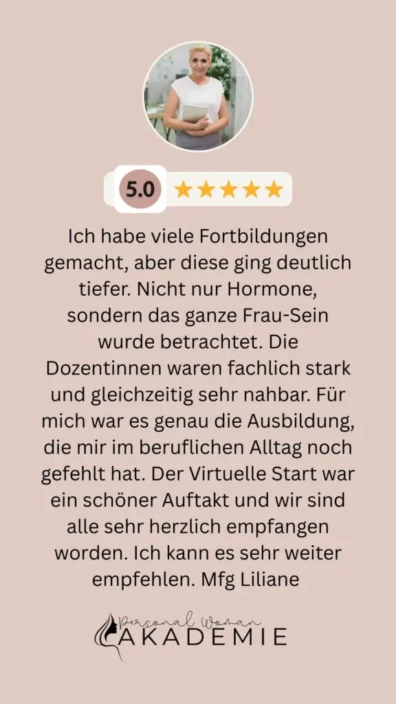 Die Personal Woman Akademie bietet dir unterschiedliche Ausbildungsvarianten, die sich flexibel an deine beruflichen Ziele und deinen Lebensalltag anpassen. Der Fokus liegt dabei immer auf moderner Frauengesundheit und ganzheitlicher Weiterentwicklung, fachlich fundiert, praxisorientiert und für Frauen in jeder Lebensphase geeignet.